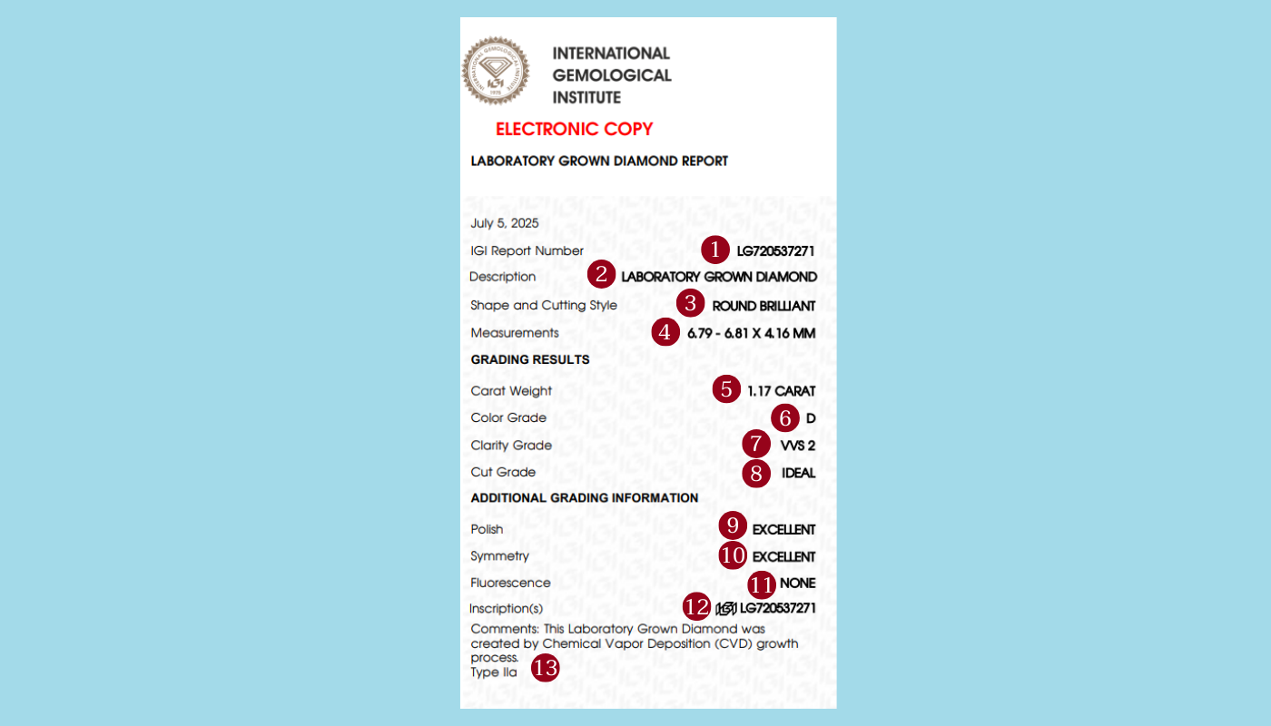การทำความเข้าใจกับใบเซอร์เพชร IGI เป็นก้าวสำคัญสำหรับลูกค้าที่จะเลือกซื้อเพชรแลปได้อย่างมั่นใจ ไม่ว่าจะเพื่อใช้ในงานหมั้น งานแต่ง หรือเก็บเป็นทรัพย์สินส่วนตัว ใบเซอร์ไม่เพียงแค่ยืนยันว่าเพชรแลปเป็นเพชรแท้เท่านั้น แต่ยังยืนยันว่ามีคุณภาพตามมาตรฐานสากล ช่วยให้คุณสามารถ เปรียบเทียบเพชรแต่ละเม็ดอย่างชัดเจน เลือกเพชรที่ตรงตามงบประมาณและความชอบได้อย่างเหมาะสม