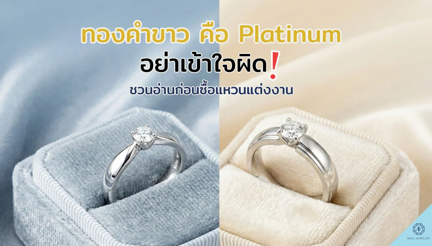 มาถึงหัวข้อสำคัญที่ทำให้เกิดความสับสนมากที่สุดค่ะ ในประเทศไทยเรามักจะเรียก Platinum ว่า ทองคำขาว ซึ่งชื่อนี้เองที่ทำให้หลายคนเข้าใจผิดคิดว่ามันคือทอง หรือเป็นสิ่งเดียวกับ White Gold NEO JEWELRY ขอขีดเส้นใต้หนาๆ ตรงนี้เลยค่ะว่า ถึงชื่อไทยจะมีคำว่า ‘ทอง’ แต่แพลตตินัม ไม่มีส่วนผสมของทองคำ (Gold) อยู่เลยแม้แต่นิดเดียวค่ะ