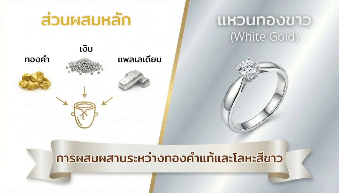 | หัวข้อเปรียบเทียบ | ทองขาว (White Gold) | ทองคำขาว (Platinum) |